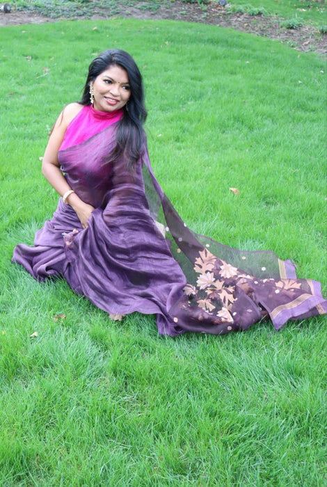 Dark Purple Handwoven Matka Muslin Jamdani Silk Saree