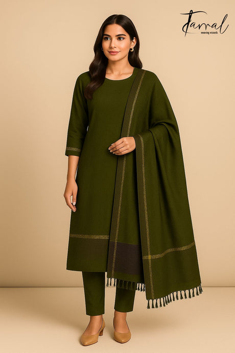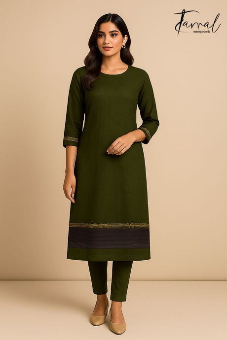 Peacock blue with zari border tissue linen kurti & dupatta set