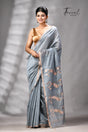 Steel Grey Pure Mulberry Silk Handwoven Jamdani Saree