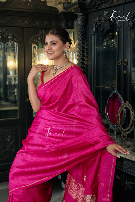 Hot Pink Colour Pure Tussar Silk Handwoven Jamdani Saree