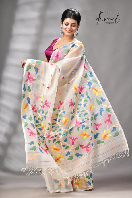 Offwhite With Multicolour Floral Handwoven Jamdani Saree
