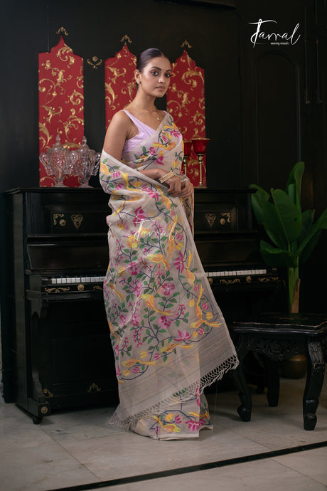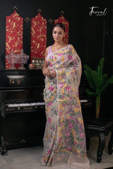 Offwhite with multicolour Shakuntala them handwoven muslin silk jamdani saree