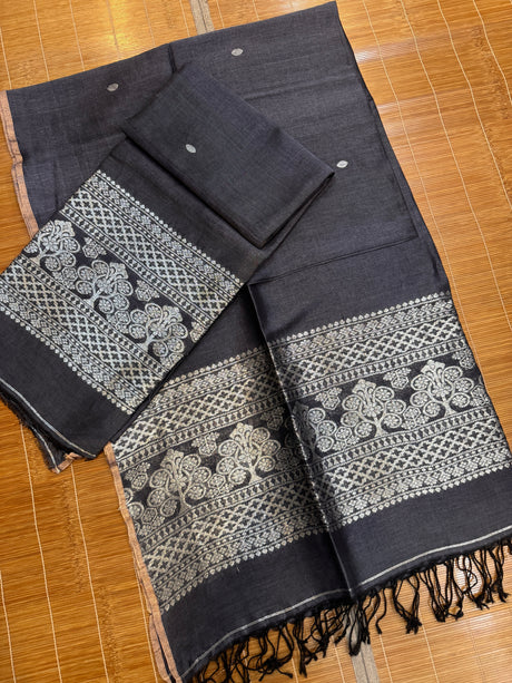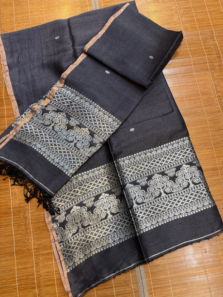 Charcoal black with silver zari work handloom Kurti & Dupatta set