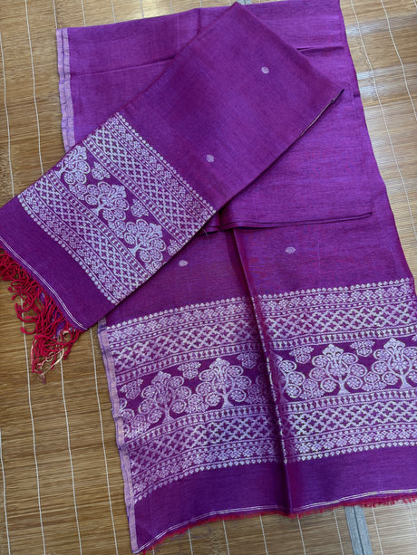Magenta Colour Pure Linen Hand Block Printed Saree