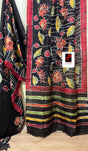 Tamal unveils a stunning Black with red border lotus hand batik in katan silk saree, silk mark certified, accompanied by a blouse piece. This pure and authentic silk creation is not only lightweight but also exudes a fashionable charm. Perfect for any occasion or casual look, Tamal's silk saree promises elegance and versatility in every drape. Elevate your style effortlessly with this exquisite piece.